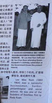 同年十一月澄海县县长刘执寰率领访问团莅临访问,该县工商考察团一行三十余名同时抵新,适逢本会馆假双喜楼举行廿七周年纪念,本会馆乡贤、名誉顾问劳工部长兼惹兰勿刹集选区国会议员李文献医生为大会主宾,宾主洽谈甚欢。
